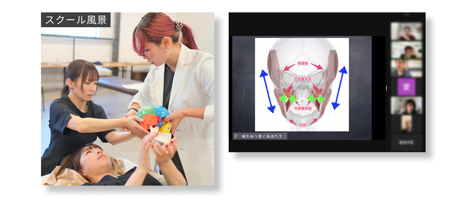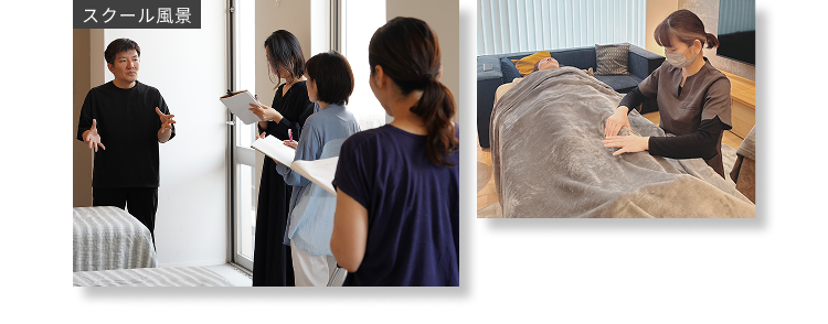 A:はい。美容や整体の経験がなくても、基礎からしっかり学んでいただけます。 実技は全国対応の講師と東京本部で直接指導、オンライン動画で何度でも復習可能です。